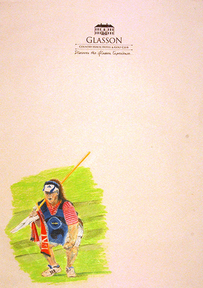 Following a short course in method acting (to learn how to inhabit the mind of an 18 year old fan), 18 Holes with Fanny is a series of drawings of Fanny Sunesson - a female professional Golf Caddy (formerly for Nick Faldo).The logoed paper is from golf hotels around the world. Over 18 holes, the series tracks a teenage fan's obsession with Fanny at work both in the limelight and in the background.