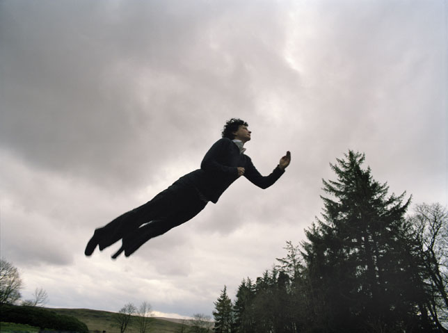 A series of photographs of attempted levitations based on existing imagery of others who have either been prone to levitation (e.g. St Joseph of Cupertino), have attempted to fly (e.g. the artist Yves Klein, and based on his attempts, Paul McCarthy), or are represented moving between the mortal and immortal worlds, such as Bosatsu’s and Amida’s flotation on Clouds and the Japanese Pure Land sect.